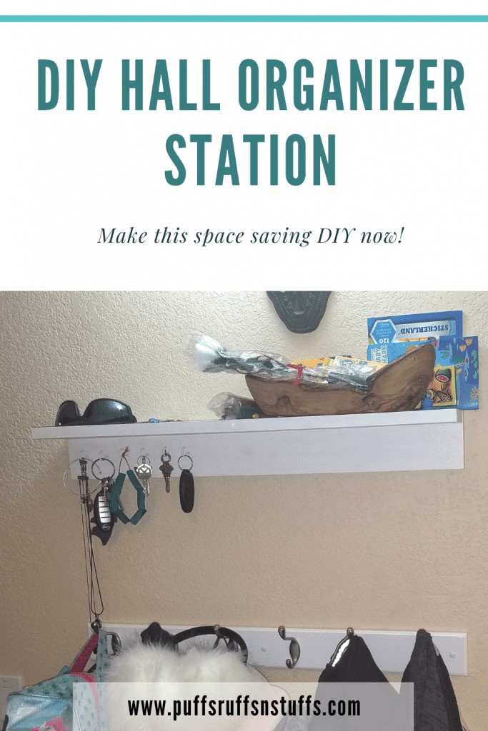 Are you thinking about making a DIY Key Organizer? Are you looking for some way to organize the things you need for leaving the house? Bags, backpacks and jackets go great on this hall organizer station. It even has a good spot for keys and storing small objects like sunglasses and pocket contents. This was a super easy project but it has a HUGE impact on keeping my house clean. Keep reading to find out how to make your own DIY Key Organizer to add to a Hall Organizer Station.